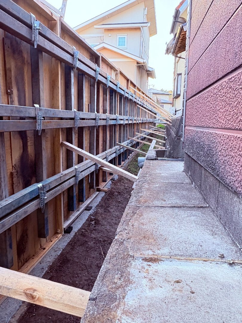 本日擁壁の型枠、組終わりました‼️